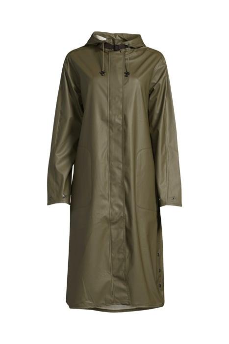 A Feminine A-Shaped Long Raincoat In Loose Fit. The Raincoat Has A Discreet Ilse Jacobsen Hornbæk Logo Debossed On Left Sleeve. The Hood Is Detachable And Is Attached By A Weather Proof Strap In Artificial Leather. The Style Features Side Seam Pockets, Side Seam Slits And A Ykk 2-Way Zip Closure At Center Front. Quality Is A Light And Subtle Waterproof Rubberized Pu With Polyester Tricot On Backside And All Seams Are Double Welded. The Style Is Available In A Wide Range Of Both Classic And Seasonal Colours.