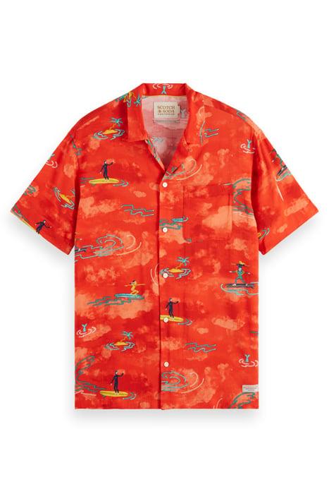 ALLOVER PRINTED VISCOSE SHORT RED SURFER AOP