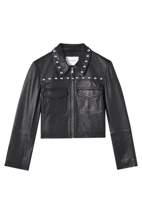 The Anais Jacket Is Crafted From Black Leather. It Has A Neat Collar, Rounded Silver Stud Detail, A Zip Front And Flap Patch Pockets.