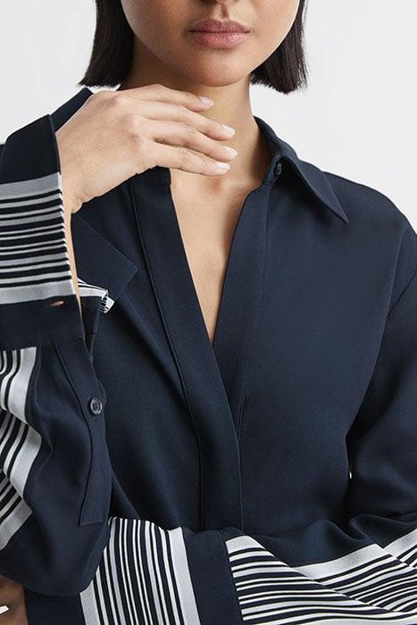 Effortlessly blending sophistication with contemporary design, the Arabella Dress Shirte Navy elevates your wardrobe with its sleek silhouette and timeless appeal. Crafted to exude modern charm, it complements any occasion effortlessly.
