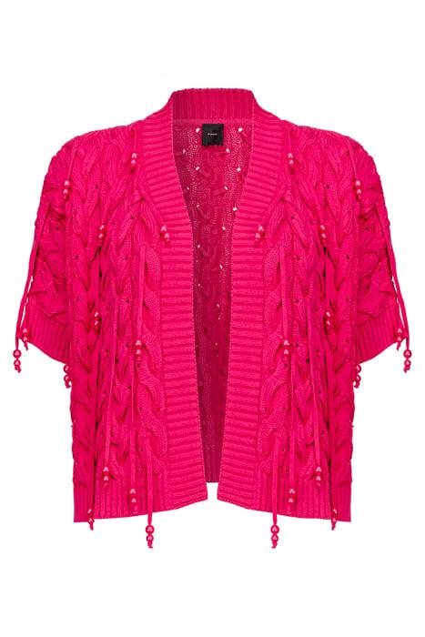 Cropped, Short-Sleeved Cardigan In Cable-Knit Cotton Fabric, With No Fastening And Strips Embellished With Tonal Beads.
