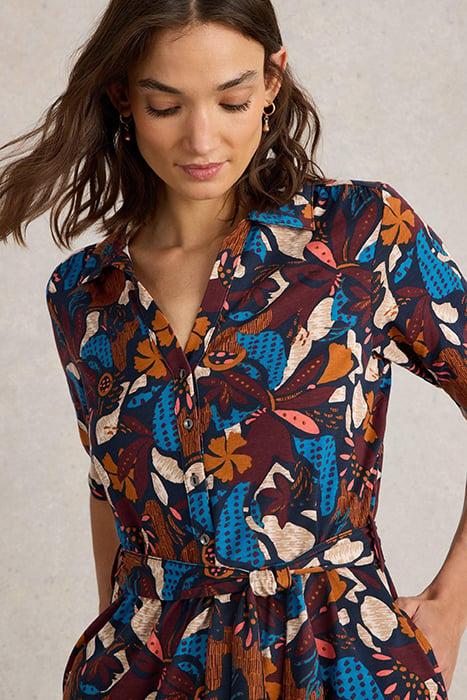 AVA JERSEY MIDI DRESS NAVY PRINT