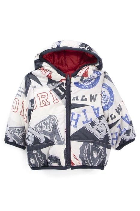 BABY BOYS’ GREY PRINT/RED REVERSIBLE PADDED JACKET