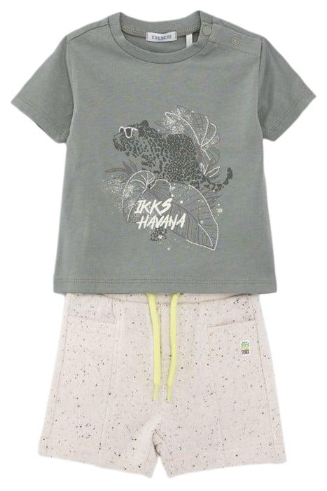 BABY BOYS’ KHAKI T-SHIRT AND ECRU BERMUDA SHORTS OUTFIT