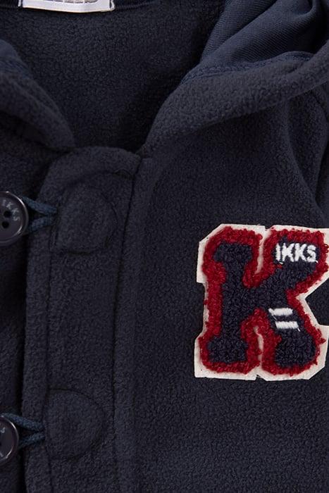 Join The Ikks League With This Hooded Cardigan For Baby Boys. The Navy Fleece Sports A Bouclette Badge On The Chest, And Embroidery On The Left Sleeve.