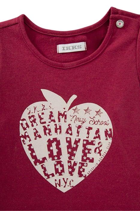 BABY GIRLS’ BURGUNDY HEART-APPLE ORGANIC COTTON T-SHIRT