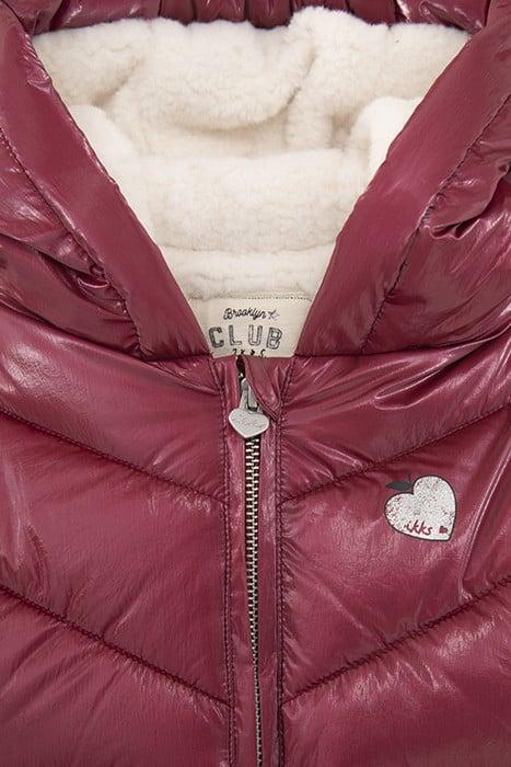 BABY GIRLS’ METALLIC BURGUNDY HOODED PADDED JACKET