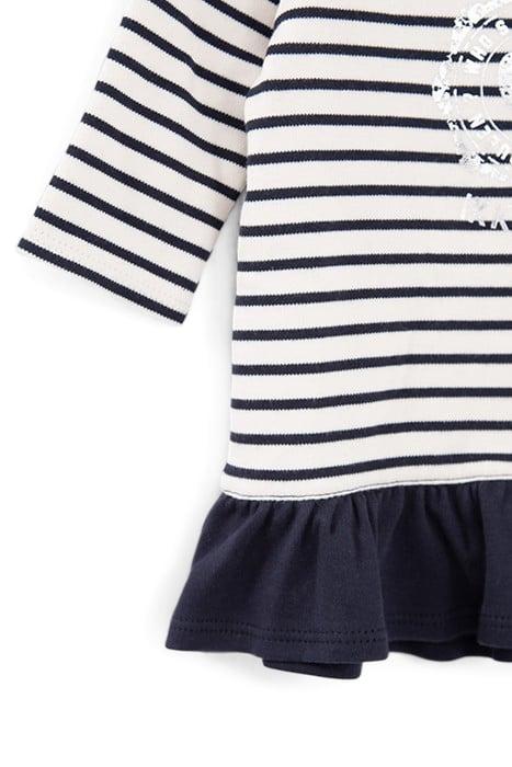 BABY GIRLS’ SAILOR-STRIPE DRESS WITH PRINT AND SIDE RUFFLE