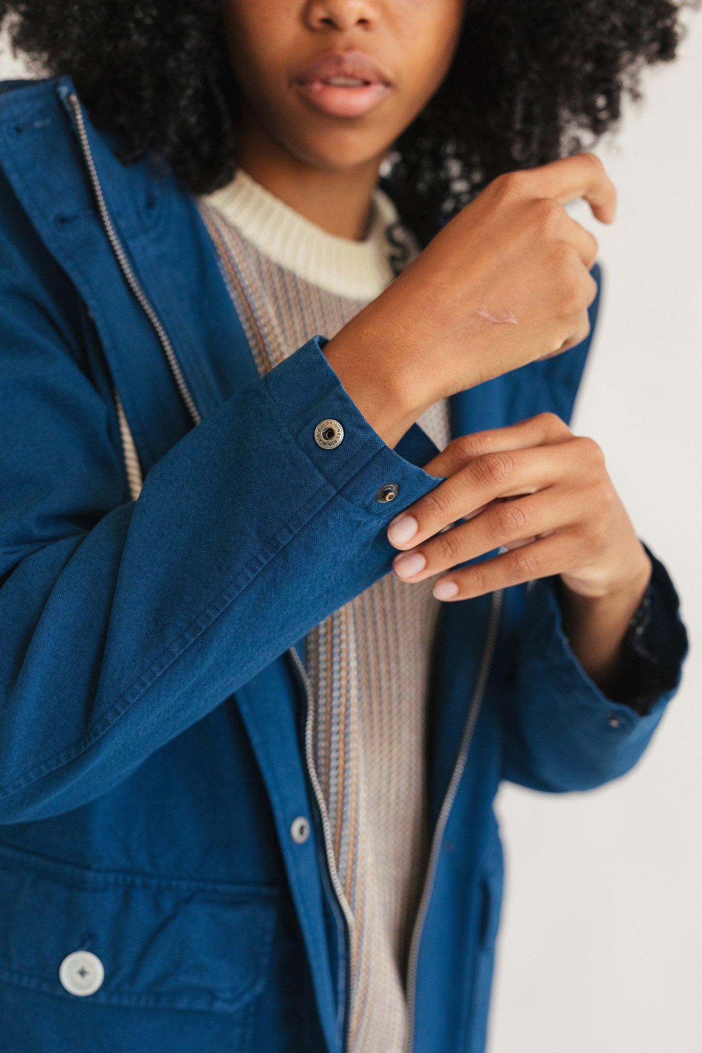 This Sustainable Parka Jacket’S Outer Shell Is Made From Sleek Organic Canvas. It Comes With A Front Placket To Keep Wind At Bay And A Zip Protector To Protect Sensitive Lips.