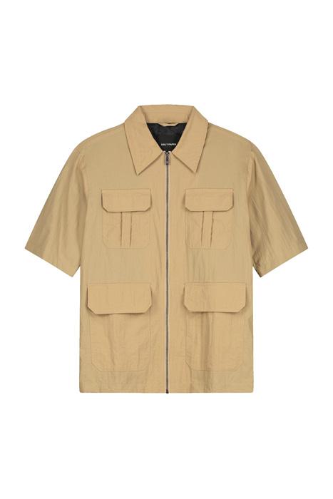 A more youthful spin on a military classic, this short sleeve shirt pairs the four pocket construction of a traditional safari shirt with a contemporary oversized fit. Crafted from a lightweight crinkled fabric with a branded metal zip opening, the shirt has a more sporty aesthetic too. Features a concealed custom monogram lining alongside a woven label detail under the rear of the collar.
