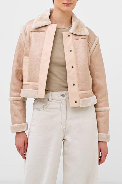 BELEN FAUX FUR L/S CROP JKT BROWN