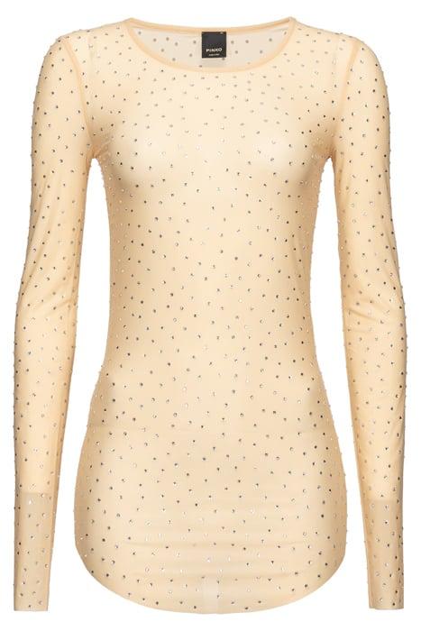Long-Sleeve Sweater In Soft, Light And Glossy Charmeuse Fabric, With Rhinestone Detailing All Over.