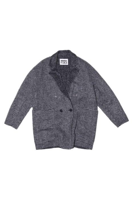 Checked Double-Face Coat In Black. A-Line Model, Long Sleeve And Lapel Collar.