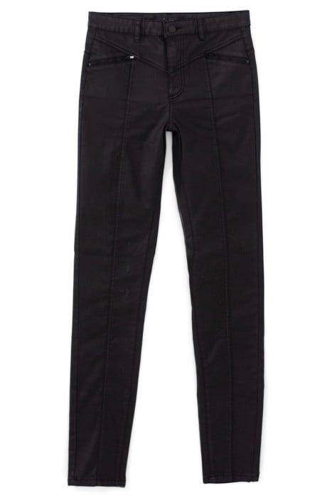 BLACK COATED HIGH-WAIST SCULPT-UP SLIM JEANS