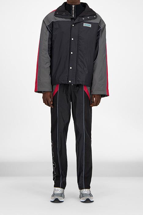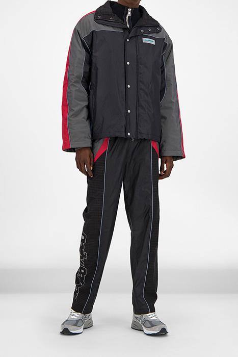 A functional jacket, constructed with black, checked, grey and red contrast panels, and reflective piping. The secure double closing and the high neck provide complete insulation and a warm fit. Drawstrings with branded cord stoppers on the neck and waist make it easy to adjust the fit to your liking. Featuring the Daily Paper rubber patch on the chest. Complete the look with the Guka Pants and Gasa Jacket.