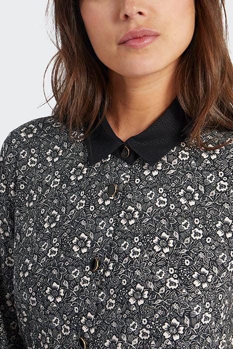 BLACK GRAPHIC FLOWER PRINT SHIRT-DRESS