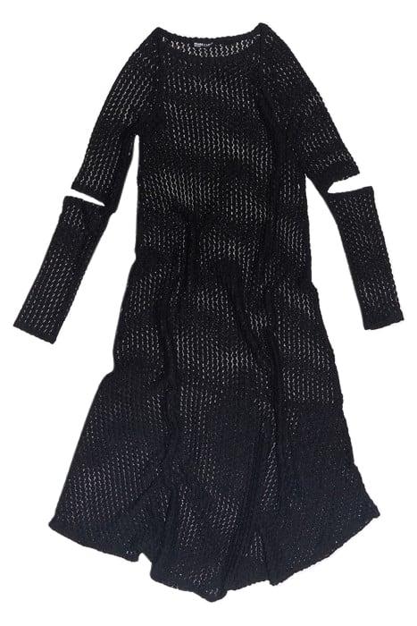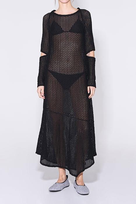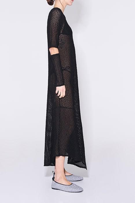 Knit Dress In Black. Straight-Cut Midi Model, Long Sleeve With Cut-Out Elbow Details And Crew Neck.