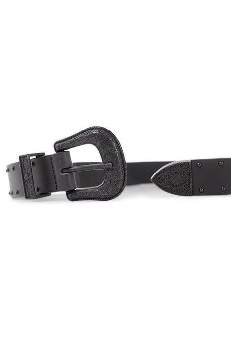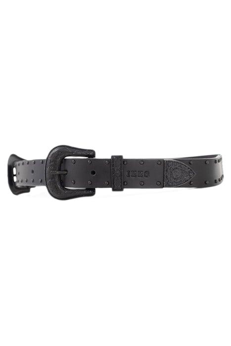 BLACK LEATHER BELT WITH DOUBLE COWBOY BUCKLE