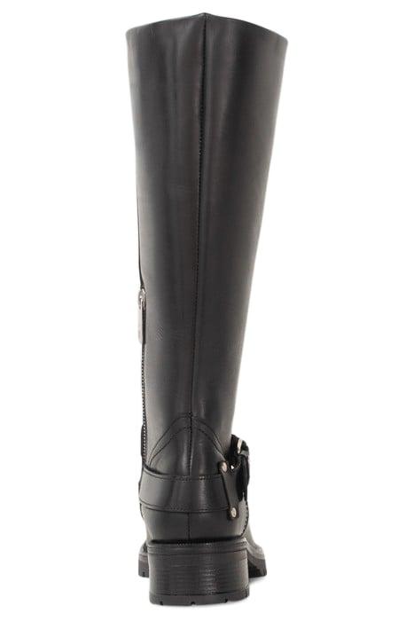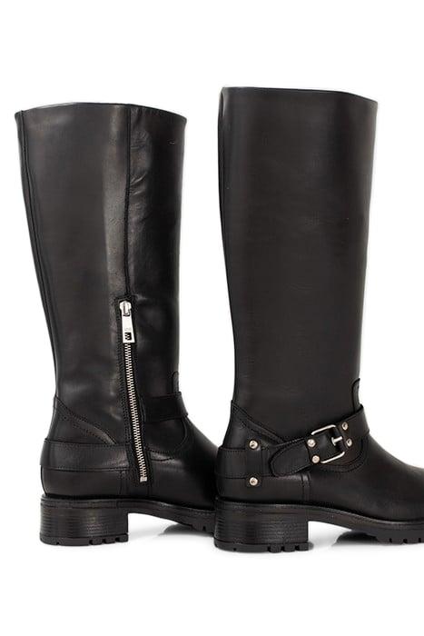 BLACK LEATHER BIKER-STYLE BOOTS WITH LUGGED SOLE