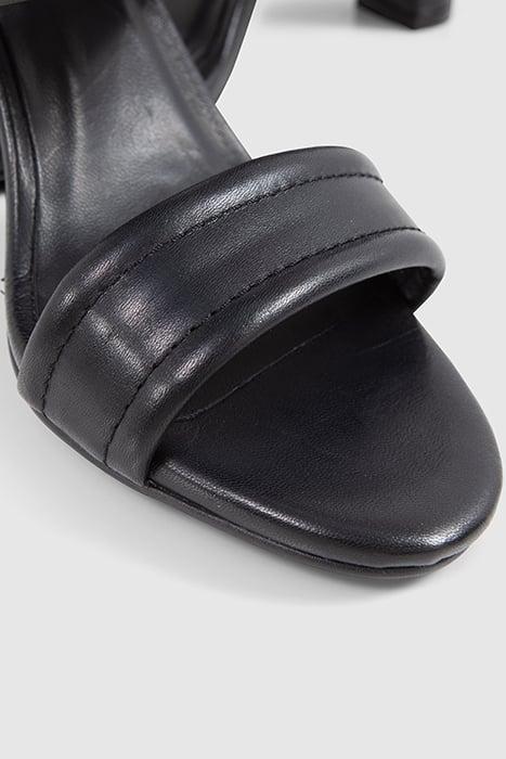 BLACK LEATHER ZIPPED HEELED SANDALS