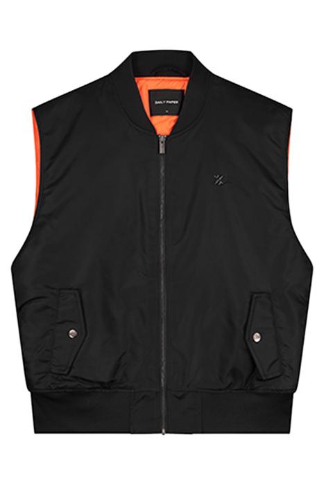 Crafted from nylon with an oversized fit, this vest is a modern piece of outerwear blending form and function with a Daily Paper refresh. Inspired by the classic bomber jacket, it has a front zip closure, a ribbed collar and welt pockets with a flap and snaps plus, vivid orange lining and our logo shield pin on the chest.