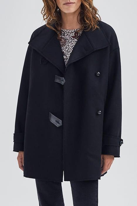 BLACK PEA COAT WITH ROCK DETAILS