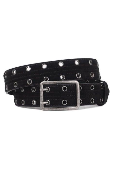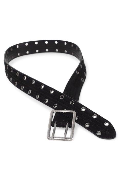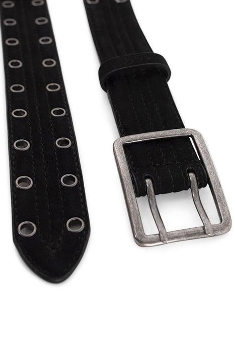 BLACK QUILTED SUEDE BELT WITH EYELETS