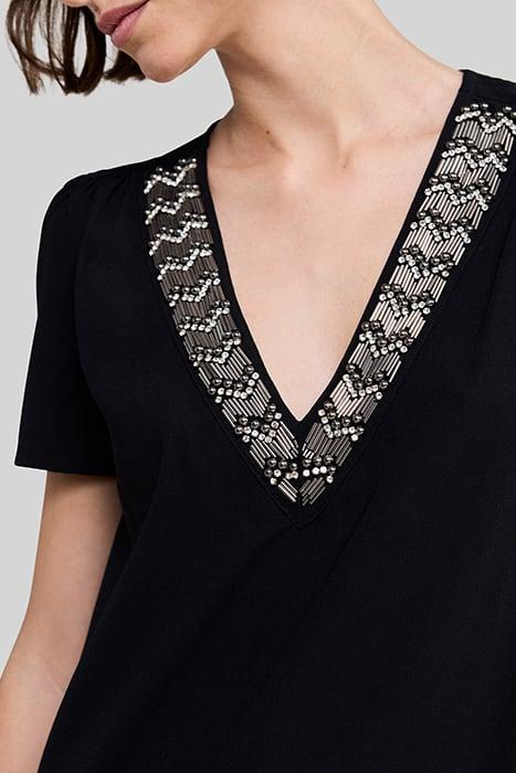 BLACK RECYCLED DRESS, PRETTY EMBROIDERED COLLAR
