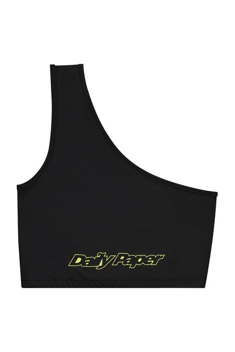 Get the athleisure look with this one-shoulder crop top with medium support for low impact activities like yoga. In a flattering shade of black with contrast neon yellow Daily Paper branding, this will ensure you're the best-dressed person at the studio. Pair with matching Rebike shorts for a vivid activewear look.