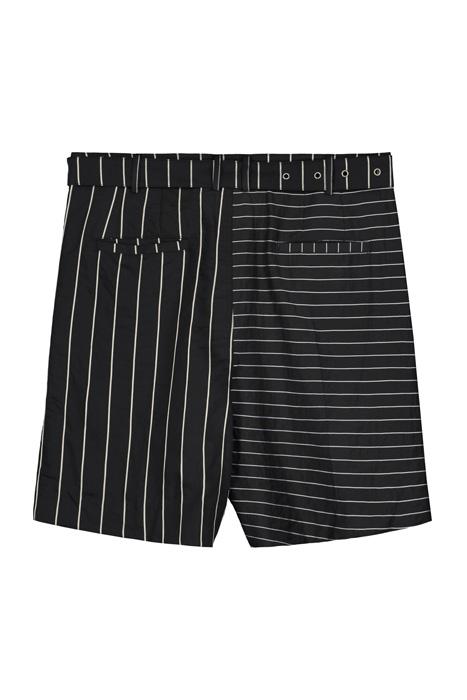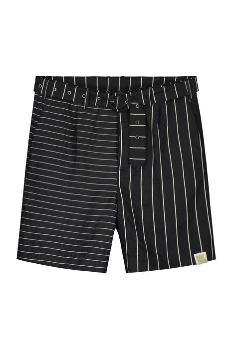Based on the pattern of a tailored trouser, these shorts are composed of mismatched striped panels, and wear more like a piece of formal wear than a traditional short with a pleated front, pressed creases and darting at the back for better shape. Comes with a matching fabric belt with the circular buckle that looks good both on display and with loose ends. Go with the matching Black Striped Hymie Shirt on top for a matching duo of summer separates.