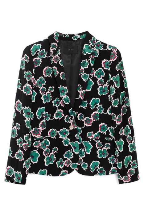 BLACK SUIT JACKET WITH GREEN FLOWERS PRINT