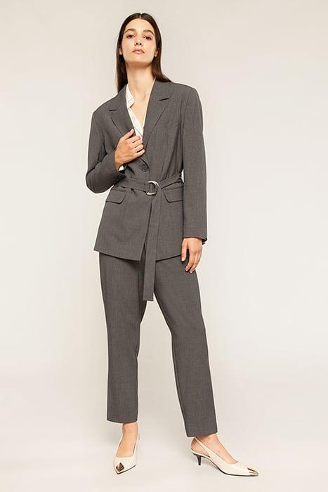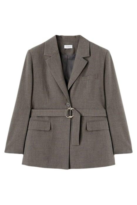 Melange Polyviscose Blazer With Lining,Front Placket With Lapels Collar And Single-Breasted Closing, Tone-On-Tone Waist Belt