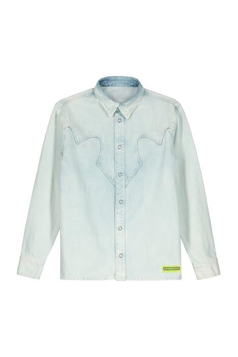 Deconstructed and distressed, these classic five-pocket denims have been bleached to the brink of complete color loss, except for some patches of indigo left around the waist. Cut with a wide straight leg fit, these jeans can be transformed from classic to conceptual using the waist attachment. The removable piece replicates the waistband of the denim complete with three working pockets – one coin pocket, one complete front pocket and one with exposed pocket bags – adding a multi-layered deconstructed aesthetic.