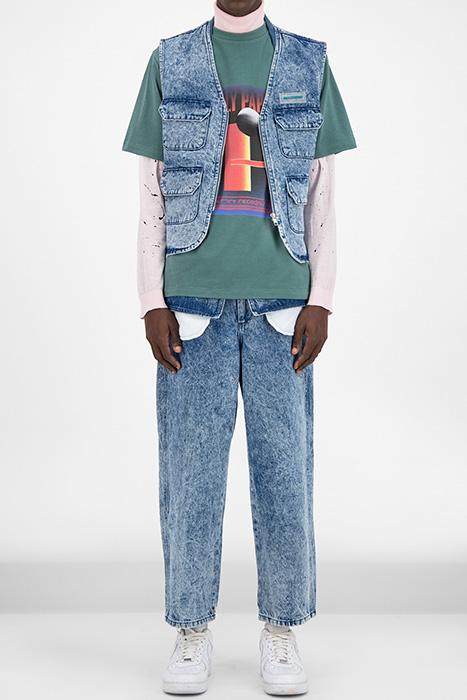 The Gafish Vest has an acid-washed fabric and is inspired by functionality, with several pockets located on the front. The vest can be closed with the zipper closing located at the front. Wear it with the Acid Wash Glart Pants for a full look.