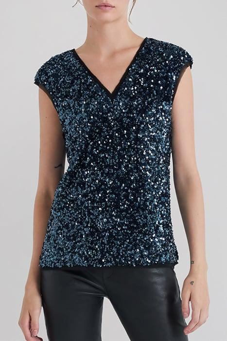 BLUE EMBROIDERED REVERSIBLE SEQUIN FRONT/BACK TOP