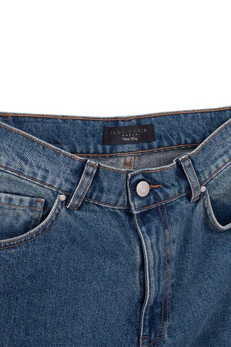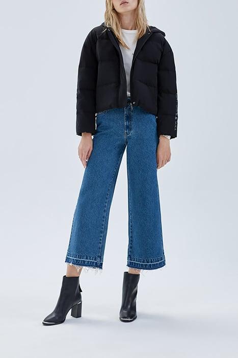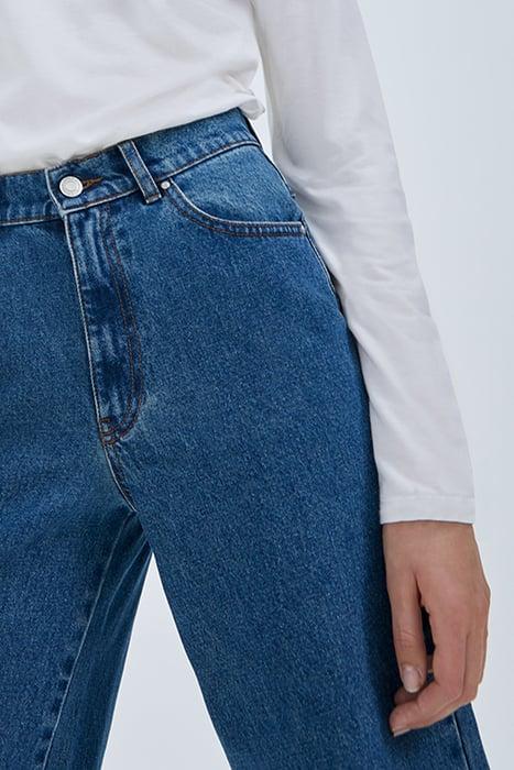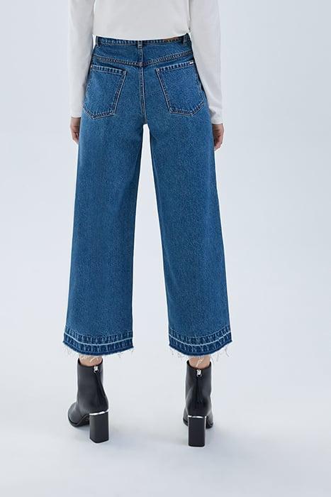 BLUE HIGH-WAIST FRINGED CUFF 7/8 WIDE-LEG JEANS BLUE