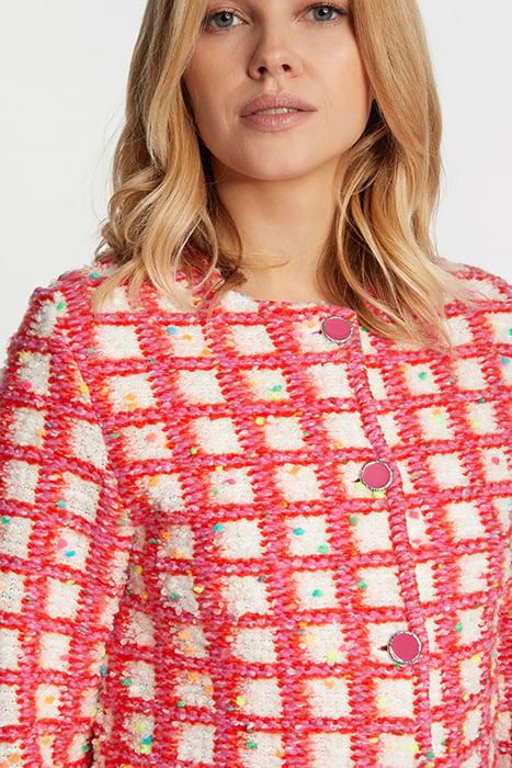 Fresh And Cheerful, This Soft Bouclé Jacket Features A Colorful Checked Pattern. It Comes With A Boxy, Short Cut In A Bodycon Fit. The Shiny Decorative Buttons Are A Nice Detail.