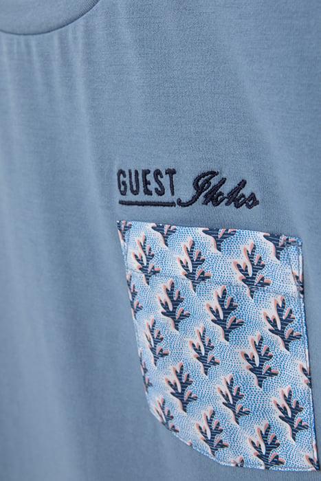 BOYS’ BLUE T-SHIRT WITH CORAL PRINT POCKET