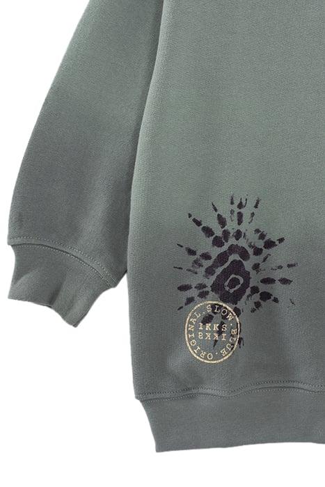 BOYS’ GREEN DEEP DYE SWEATSHIRT WITH PRINT AND BADGE