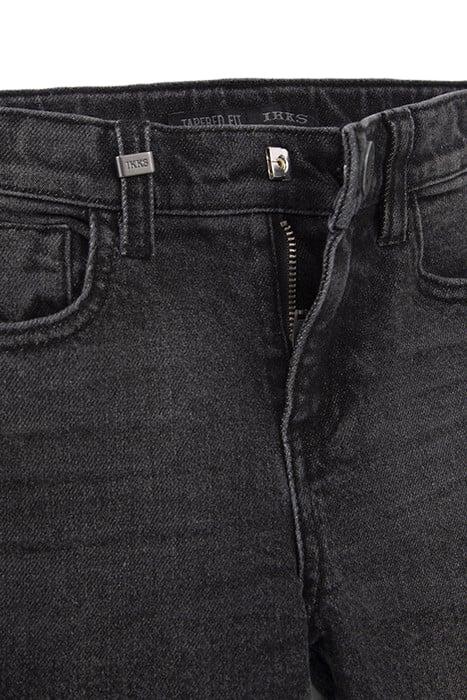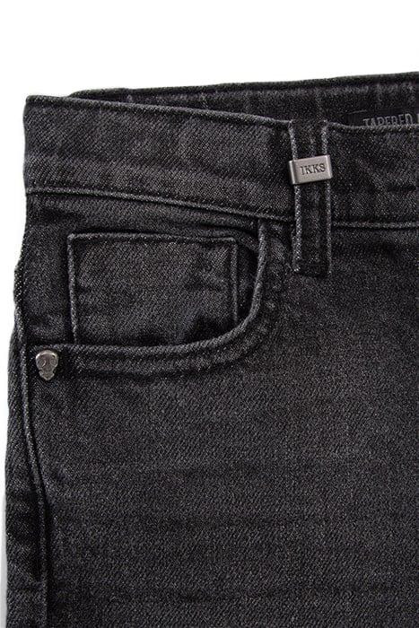 BOYS’ GREY EMBROIDERED AND DISTRESSED KNEE TAPERED JEANS