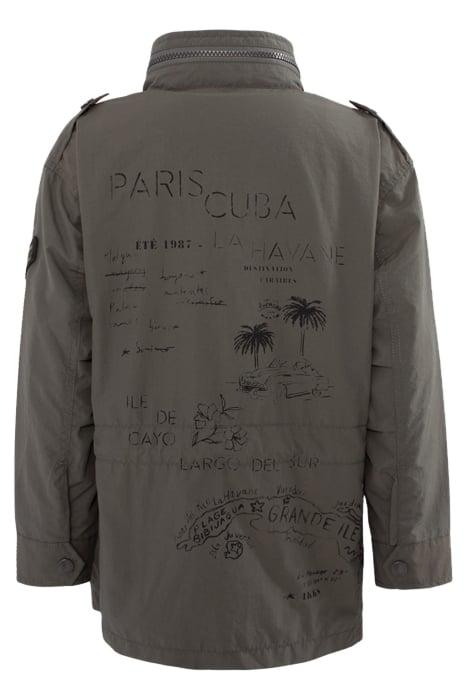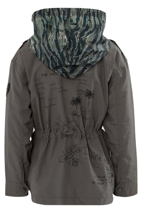 BOYS’ KHAKI NYLON PARKA WITH PRINT ON BACK