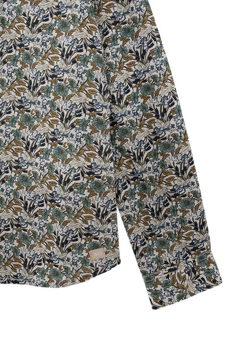 BOYS’ KHAKI SHIRT WITH GREEN FLOWER PRINT