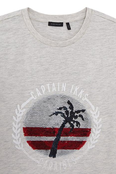 BOYS’ MARL T-SHIRT, PALM TREE/ANCHOR REVERSIBLE SEQUINS