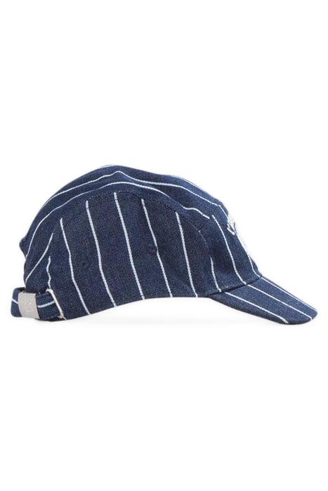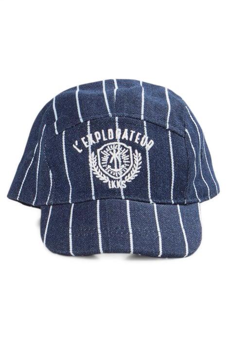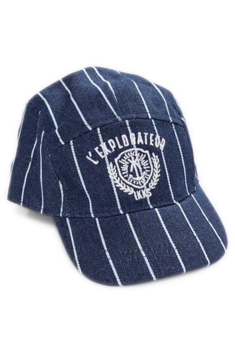 BOYS’ NAVY CAP WITH WHITE STRIPES AND EMBROIDERY