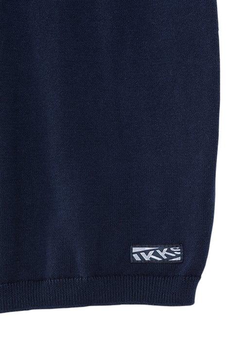 BOYS’ NAVY KNIT POLO SHIRT WITH PLACED STRIPES