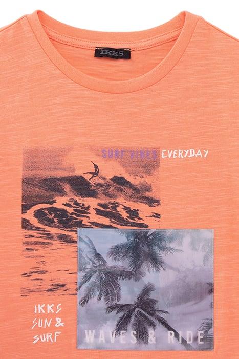BOYS’ NEON ORANGE ORGANIC COTTON T-SHIRT, LENTICULAR IMAGE