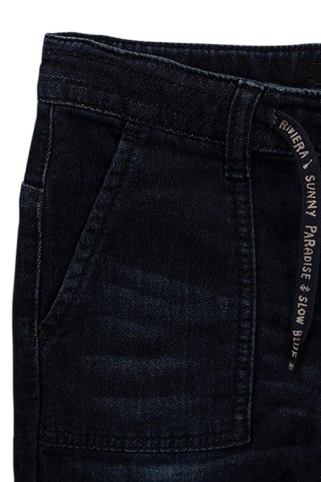 BOYS’ RAW DENIM BERMUDA SHORTS WITH SLOGAN CORDS