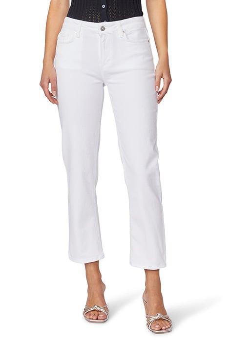 Our mid-rise tailored boyfriend jean gets a fresh update in bright white with lived-in distressing, a tattered hem that hits above the ankle and clean silver hardware. This white denim provides plenty of coverage and is soft to the touch with the perfect amount of stretch.