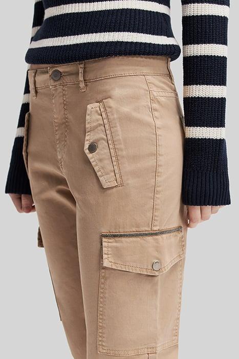 CAMEL CROPPED CARGO JEANS WITH PRETTY BRAID