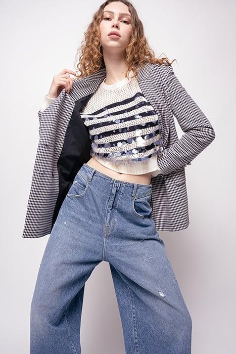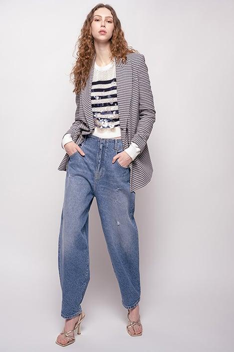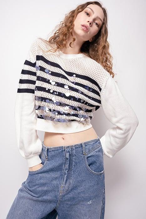 CARRENO MAGLIA RETE COTONE RIG ECRU/NAVY BLUE
